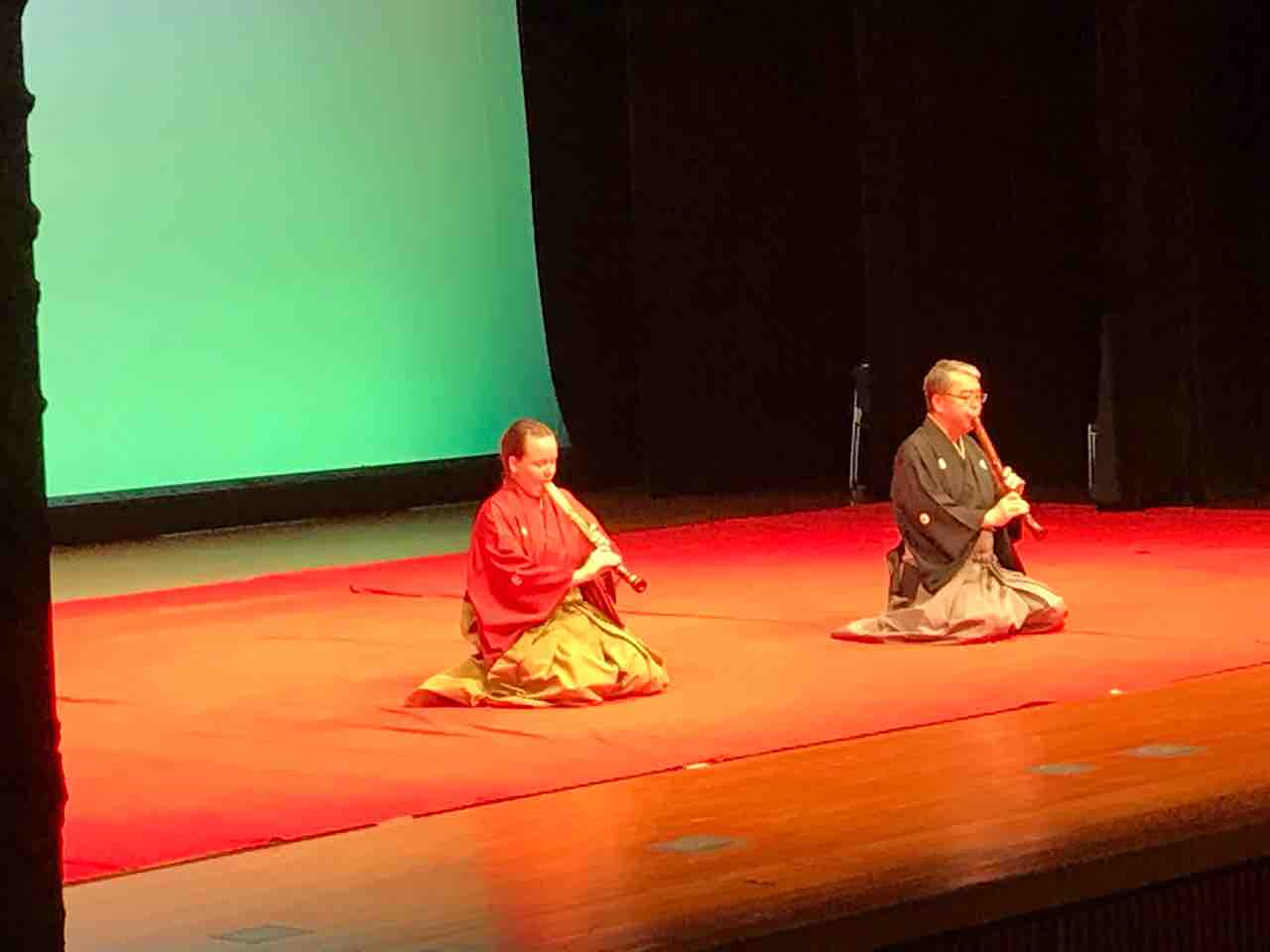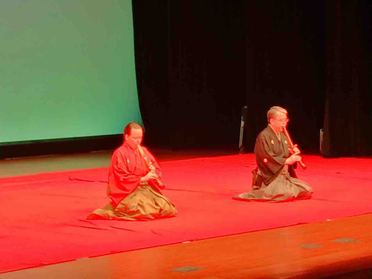 今日は尼崎三曲協会の定期演奏会に出演させて頂きました。吉村先生と二人で「鹿の遠音」を吹きました。僧侶の方は、間衣輪袈裟の姿で演奏を聴きに来られて嬉しかったです。