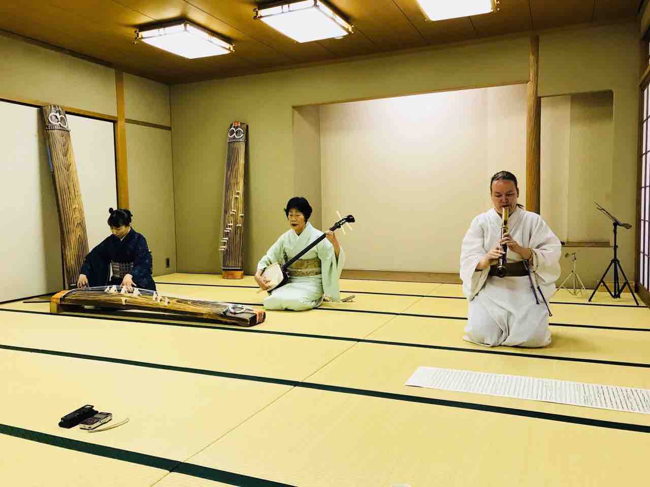 今日は箕面で富永先生の社中の浴衣会に参加させて頂きました。貴重な機会でした。曲は、宇治巡り、千鳥の曲、ままの川と笹の露を吹かせて頂きました。
