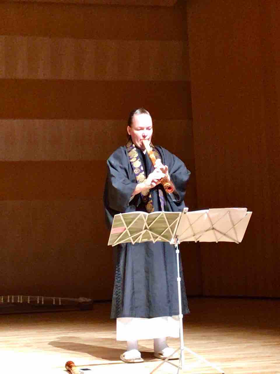 今回は初めて間衣輪袈裟で舞台に立ちました。誓願寺の住職さんにも来て頂いて、皆に紹介できたから本当によかったです〜 私が尺八をやり始めてから、応援して頂いている客さんも沢山いましたが、得度して、僧侶として歩み始めたこと、の発表を、大きな拍手頂いて、皆に応援して頂いている、嬉しい気持ちでした。