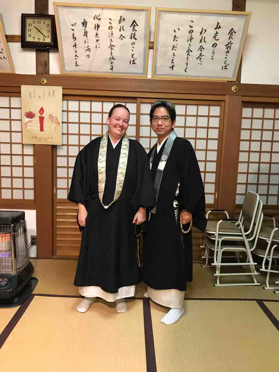 昨夕は月参りに、なんと!スイス出身の真宗大谷派の尼僧であり、また、プロの尺八奏者として、京都のN高校で英語講師として、八面六臂の活躍をされている、釋尼萌海さん(ジェシーさん)が、以速寺のご住職と、尺八のお師匠様の茅原さんと三人でわが家へお越しくださり、ご住職と共にお勤めをしてくださいました。力強く澄んだ彼女の読経の声が和室に響き渡り、厳かな空気に包まれました。亡き父母もきっと喜んでいる事でしょう。