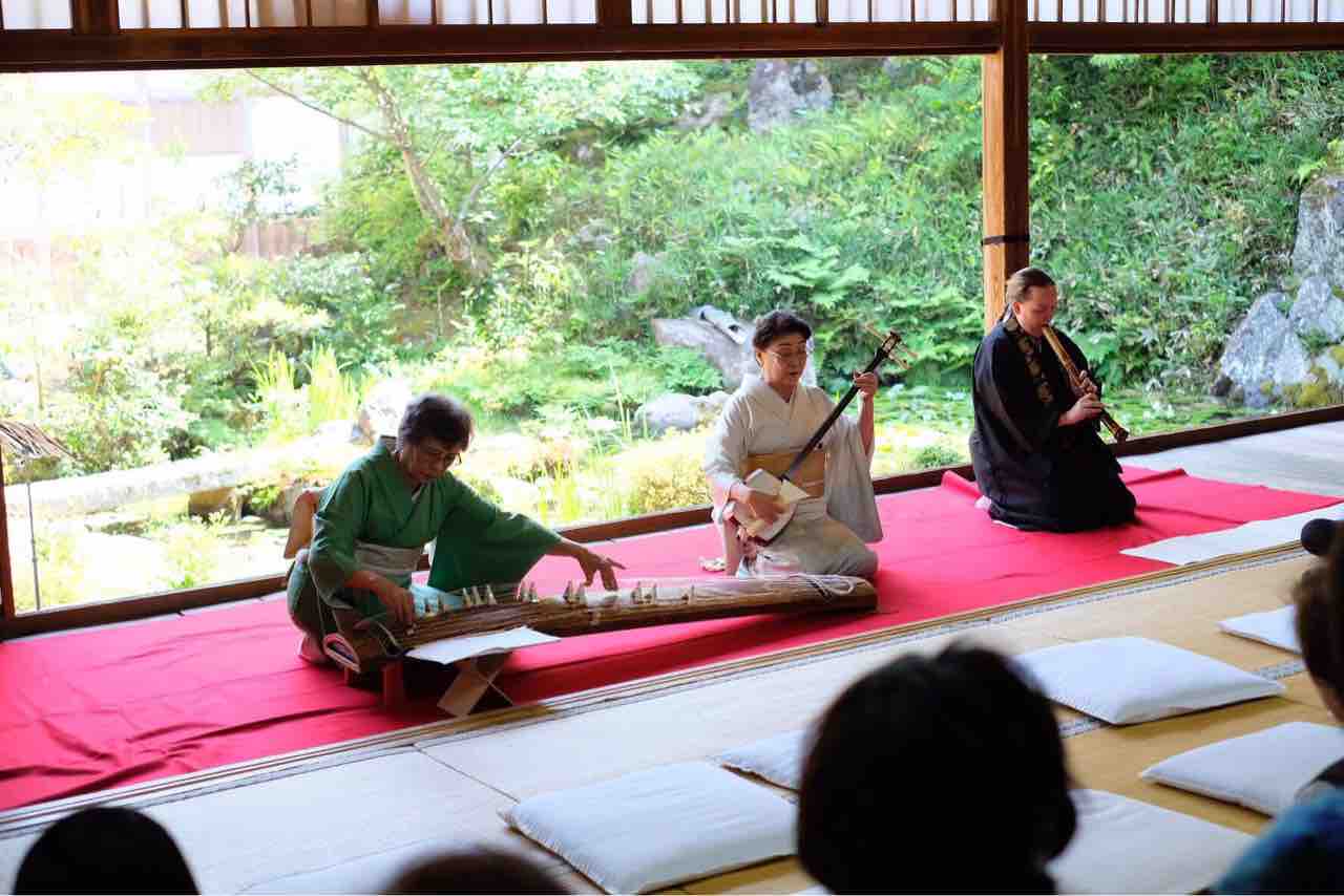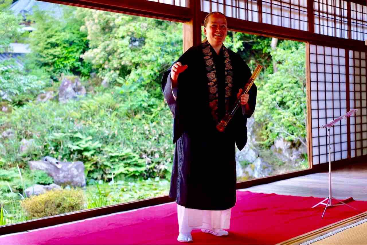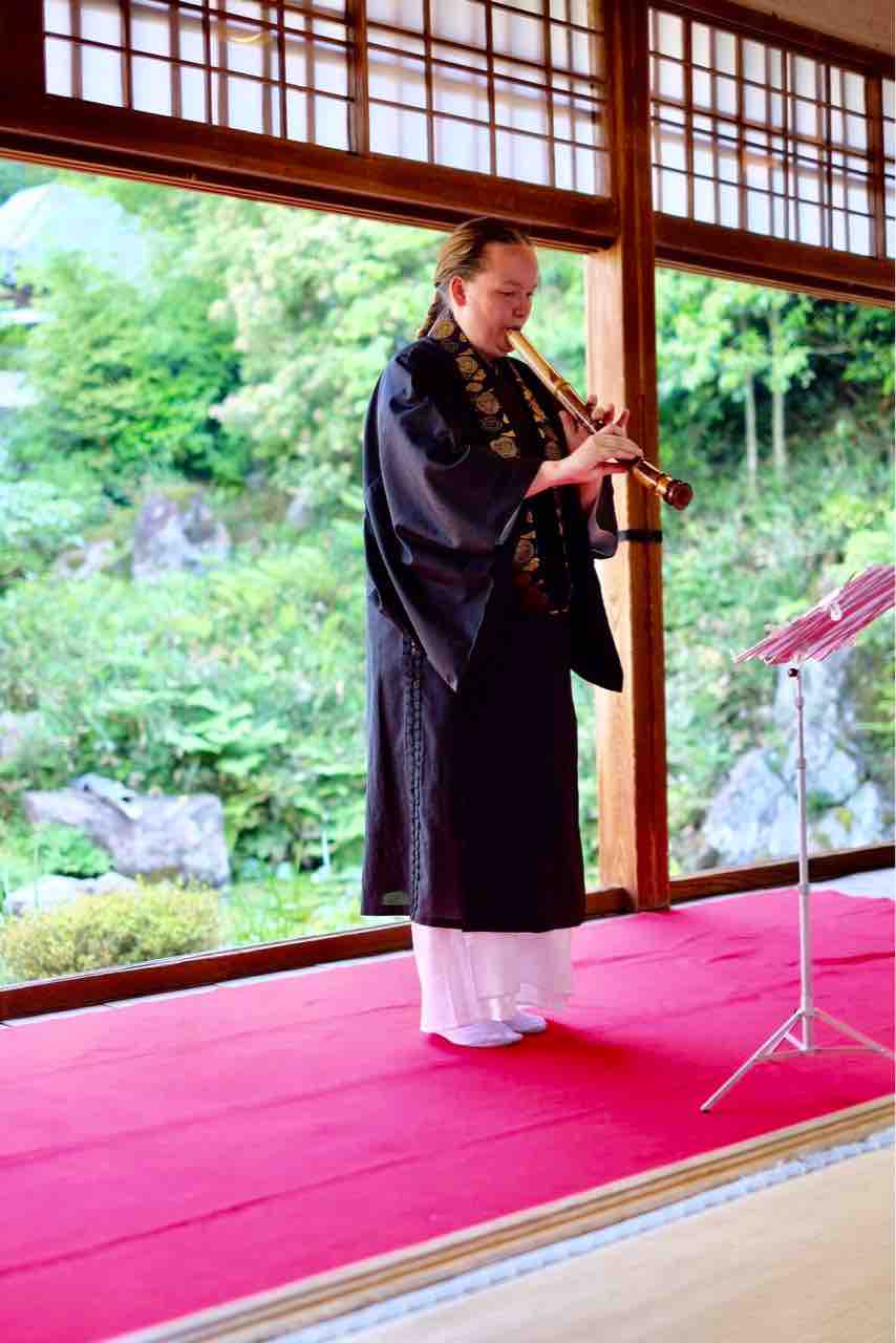 ジェシー逅盟尺八ライブは無事に終わりました。浄住寺の庭は素敵な舞台となり、演奏中は、蛙の声、鶯の鳴き声も入り、自然に包まれた雰囲気でした。お客さんは思ったより沢山の方が応援に来て下さり、本当に幸せでした。ライブは、一人ではできないもので、沢山の人に応援、協力して頂けるからこそ、実現できるものです。浄住寺の住職さんにもいろいろとサポートして下さり、感謝しています。