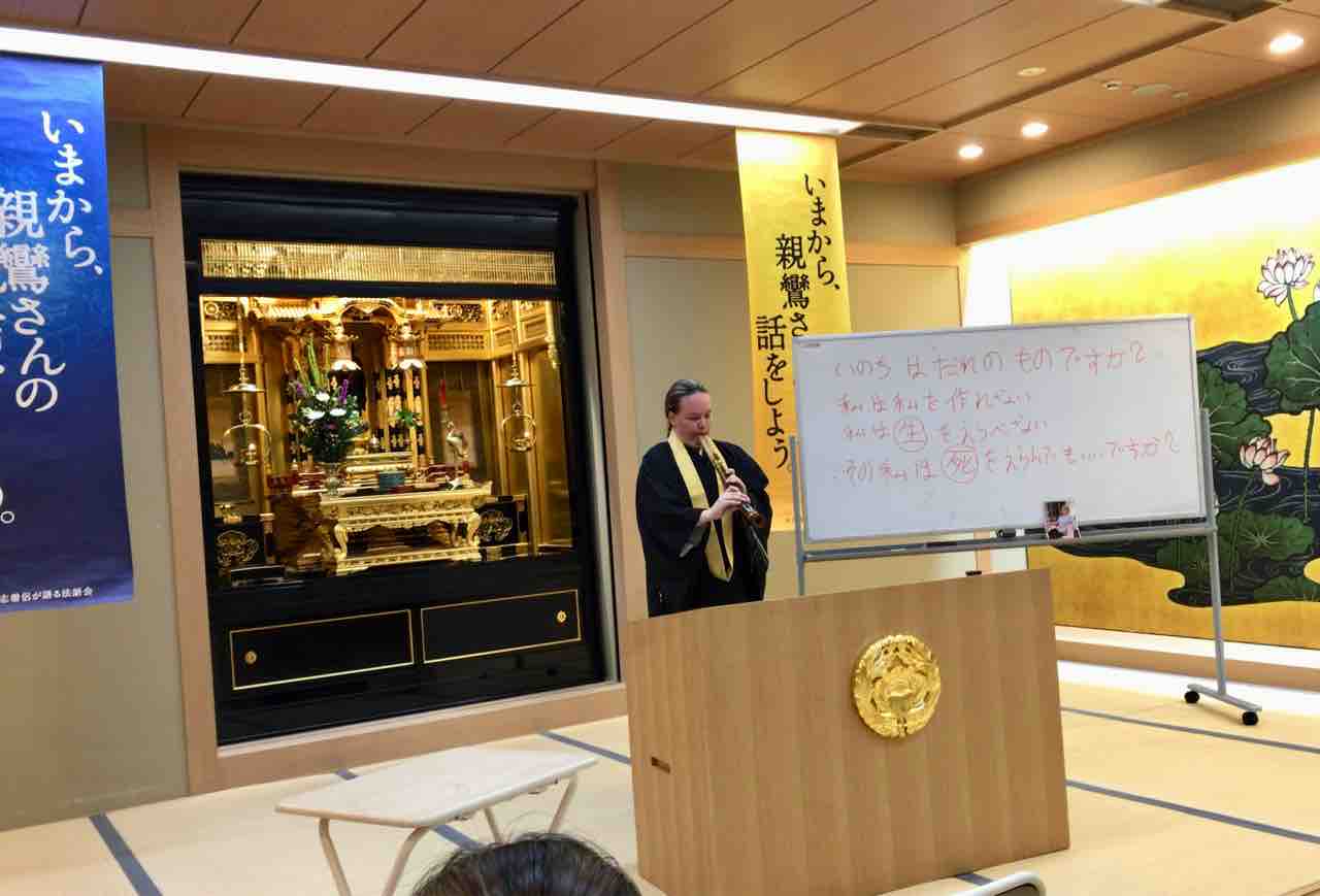 しかし、今日は知識豊富である、素晴らしい先生方と同じ場に立たせて頂き、お話をさせて頂いたこと、未熟な私にとって本当に恐縮です。僧侶として歩み始めてまだ時間が経たない私にはまだ知識も無くて、大阪真宗学院での勉強が春に始まったばっかりです。今日は貴重な機会を頂いて、心より感謝しています。親鸞交流館でお話させて頂けるなんて、夢にも思いませんでした。ただ頭が下がるだけです。今日は素敵な先生方と一緒にさせて頂いて、大変勉強になり、貴重なアドバイスを頂きました。私も、いつか、同じように、真宗の教えについて話せるようになりたいと、勉強に励みたい気持ちでいっぱいです。