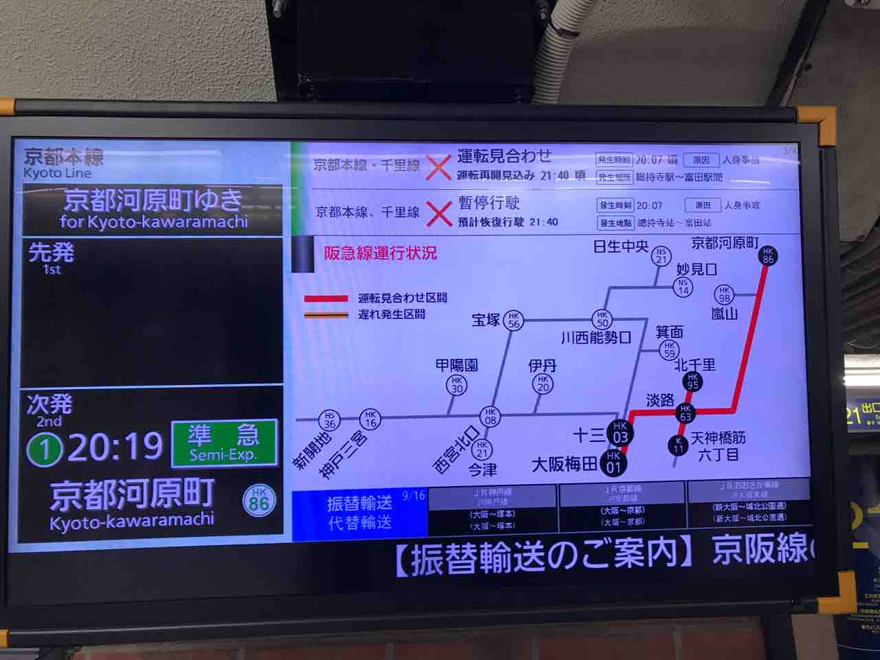 帰り道はなんと!阪急京都線運転見合せとなっています!