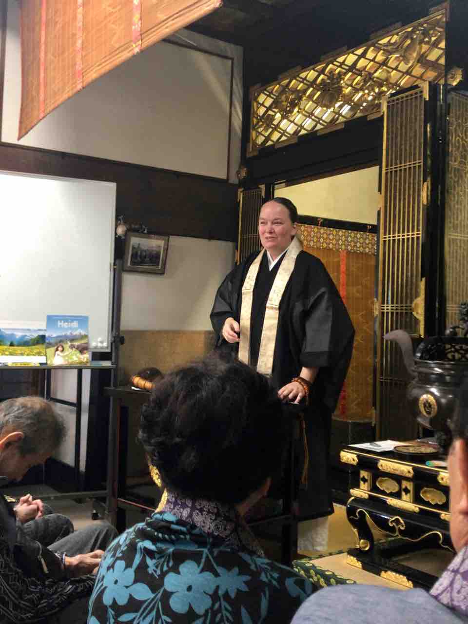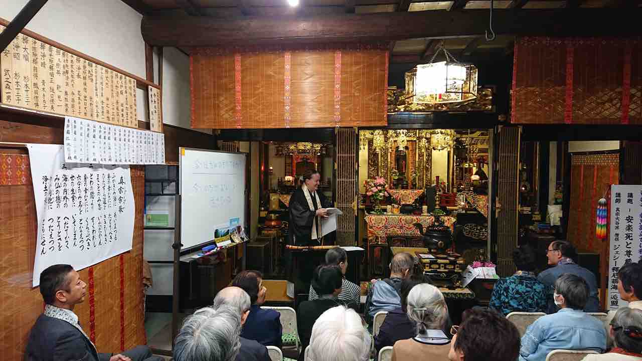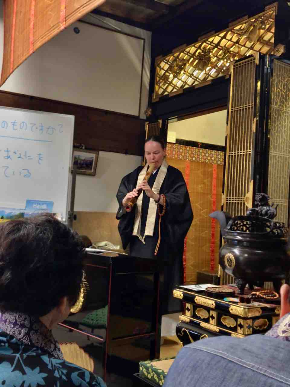 お西のお寺にご縁を頂いて、本当に嬉しいです。西楽寺は素敵なお寺で住職さんと坊守さんも優しい方です。今日はお話と尺八の演奏させて頂いたのですが、門徒さんに支えて頂き、感謝しています。報恩講の後、西楽寺のお庭で門徒さんに囲まれて、色々と声かけて頂いて嬉しかったです。実は、西楽寺で、ちょっと一目惚れに、、お庭に、ある鳥との出遇い、、