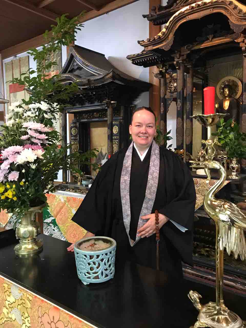 宗教は国籍ではなく、心の問題です。何を拠り所にして生きるのか、それによって 「the way of life」が決まります。グローバル化した宗教」で、日本人は牧師になり、西洋人は僧侶の道を歩む時代になりました。異文化から浄土真宗に入って、語学のハードルもあり、教学の勉強も簡単ではありません。しかし、僧侶の道に憧れ、得度と共に新しい人生が始まり、浄土真宗とお念仏に出遇えて本当によかったと、感謝の気持ちでいっぱいです。この道を歩ませて頂いているのは当然ではありません。私を支えて、私の歩みを応援して、導いてくださっている人がいるからこそ、歩めるようになれたのです。国籍、人種や言語が違っても、同じ念仏者として歩んでいる道に違いはありません。