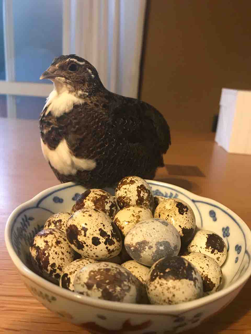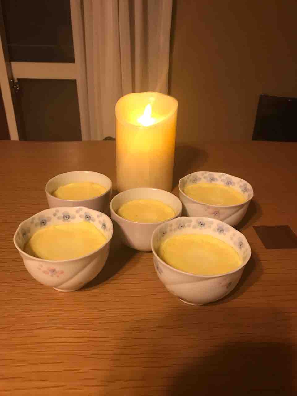 Homemade Quail Pudding うずら卵の秘めたパワー うちのうずら達の卵でプディングにチャレンジしました。うずらの卵はうこっけいの卵より各種ビタミンが豊富で、ビタミンA、ビタミンB、葉酸、DHA等も多く、特にビタミンB12は5倍もあります。 うずらのような小鳥は早く成鳥になる必要があるため、卵内にビタミン群を多く蓄えているのです。さあ、美味しくできたかしら?モデル料は高くつきました!