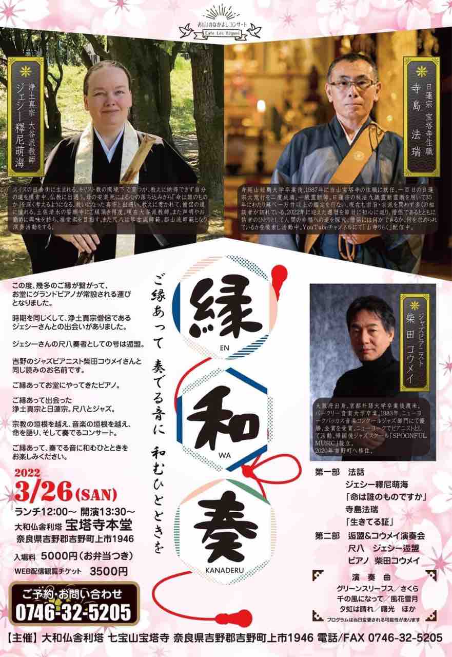 「宝塔寺本堂でピアノ&尺八の演奏」