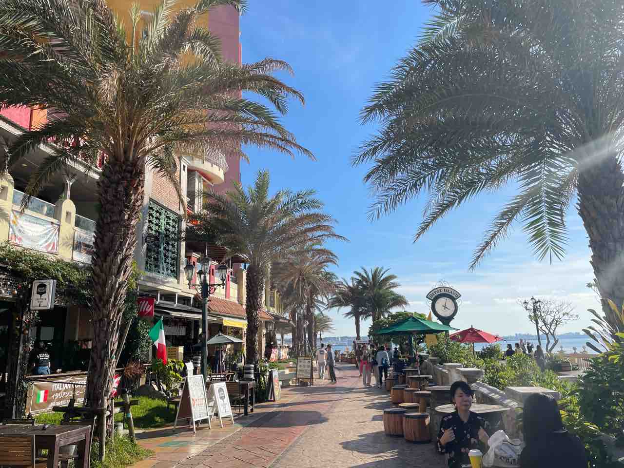 夕方は別院の西田さんに沖縄県北谷町美浜にあるリゾート地区アメリカンビレッジを案内して頂きました。海外にきているような雰囲気で、面白かったです。
