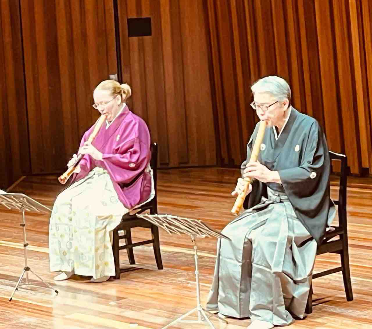 本日は久しぶりの尺八の舞台でした。「西宮さくら邦楽コンサート」に出演させて頂きました。「二本の尺八のための"EN"」という尺八二重奏でした。 今回の袴は派手なもので、数年前に都山流の師匠が東京で買われたものです。 自分の出番も終わり、今は他の演奏者の演奏を聴きながら、久しく邦楽を満喫しています。今年は出演する予定のコンサートは後いくつかあります。 邦楽のコンサートは年配の出演者が多くて、邦楽の未来が少し心配です。