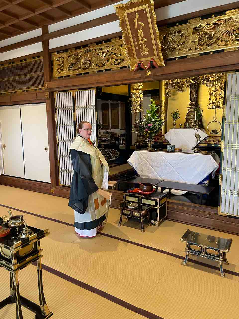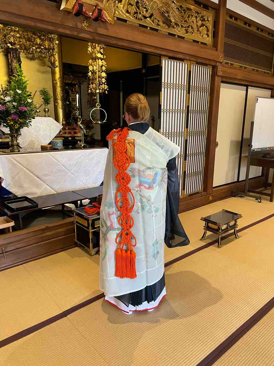 今日は圓徳寺で行われた葬儀で、住職の了解を得て、久しぶりに七条袈裟でお勤めをさせて頂きました。七条袈裟を暫く着ないと、着方を忘れてしまいそうです。敦賀の葬儀では導師も、助音七条袈裟だとお話しを聞きました。大谷派では、葬儀は通常最低二人でお勤めされる次第だと師匠から教えて貰ったが、実際は一人で勤める事が多いようです?二人も呼ぶと、お布施を心配される方がいるからか? 声明を教えて頂いた先生が、うちは必ず二人で行くと、これは大谷派の本来の形であると、念押しされました。
