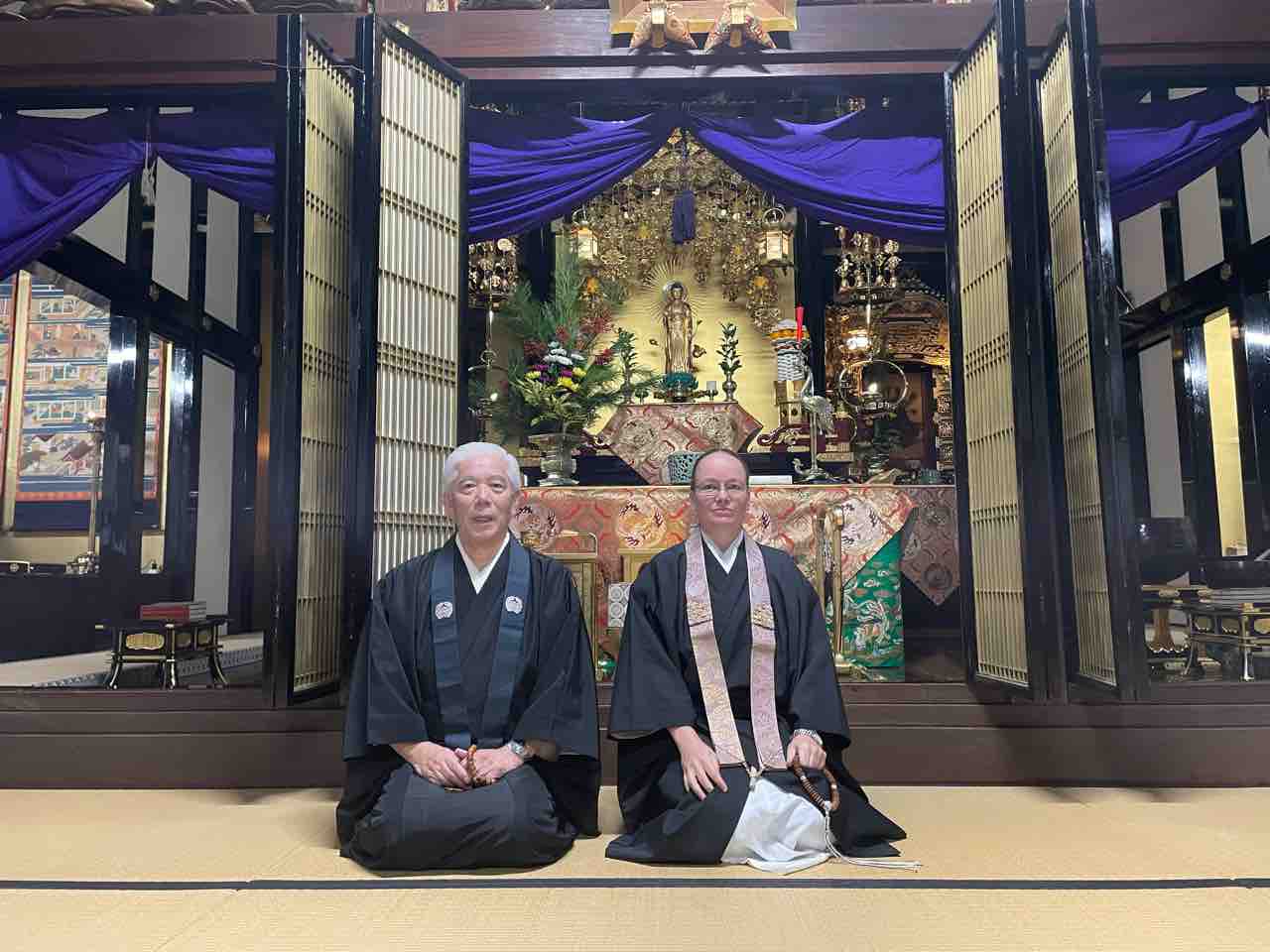 実は、今日は長浜浄明寺で高雲寺の歴史に触れ合える日になりました。今ここで代務されている朝山住職は以前高雲寺も6年程代務されました。また、朝山さんのuncle に当たる、朝山恵教師は高雲寺代25代の住職されていました。本当に不思議です。皆繋がっています。