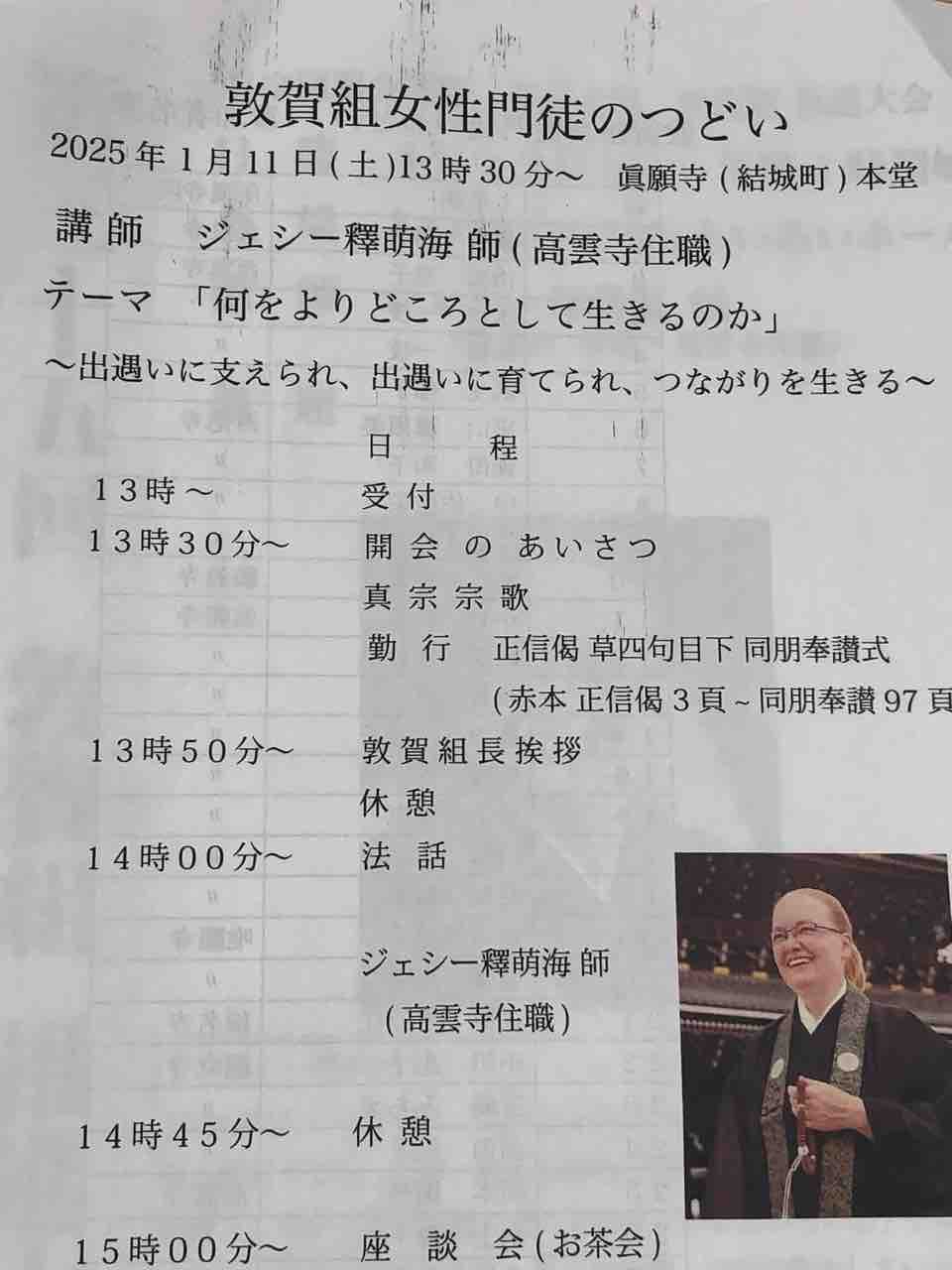 今日は「出遇いに支えられ、出遇いに育てられ、つながりを生きる」と言うテーマで、敦賀組女性門徒のつどいでお話しをさせて頂きました。